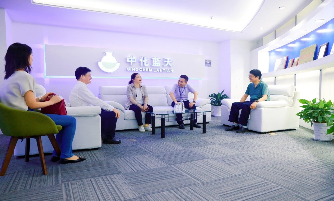2021年7月7日,生态环境部对外合作与交流中心(以下简称中心)翟桂英副主任率队赴浙江中化蓝天集团有限公司(以下简称中化蓝天)总部及其氟材料有限公司,就化工园区绿色发展、产业“走出去”等进行调研和座谈。中化蓝天董事长、党委书记王军,总经理张海兵等陪同调研。