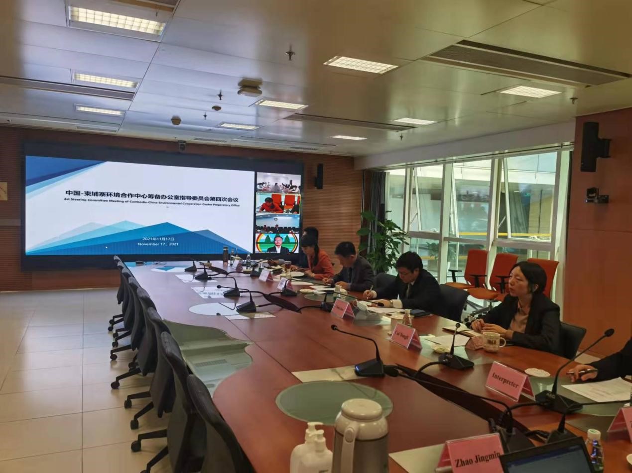 2021年11月17日,中国-柬埔寨环境合作中心筹备办公室(以下简称中柬中心)指导委员会第四次会议在线成功召开。生态环境部对外合作与交流中心副主任李永红、生态环境部国际合作司亚非拉处处长周军、中国科学院生态环境研究中心副主任杨敏、柬埔寨环境部国务秘书萨索培出席会议并发言。