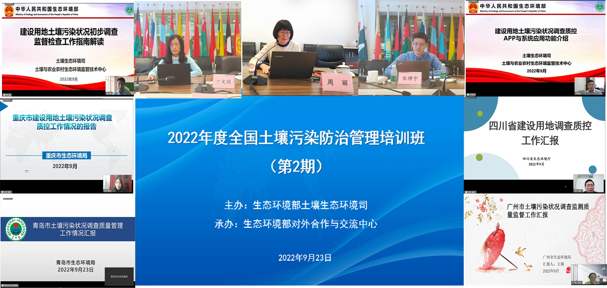 2022年9月23日,由生态环境部土壤生态环境司主办,对外合作与交流中心(以下简称中心)承办的全国土壤污染防治管理培训班(第2期)以线上形式顺利举办。土壤生态环境司污染地块生态环境处任静处长做开班讲话,全国31个省(自治区、直辖市)和新疆生产建设兵团生态环境部门的代表参加了本次培训班。