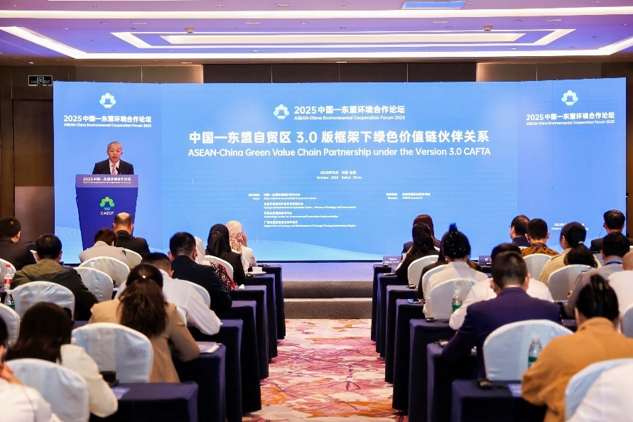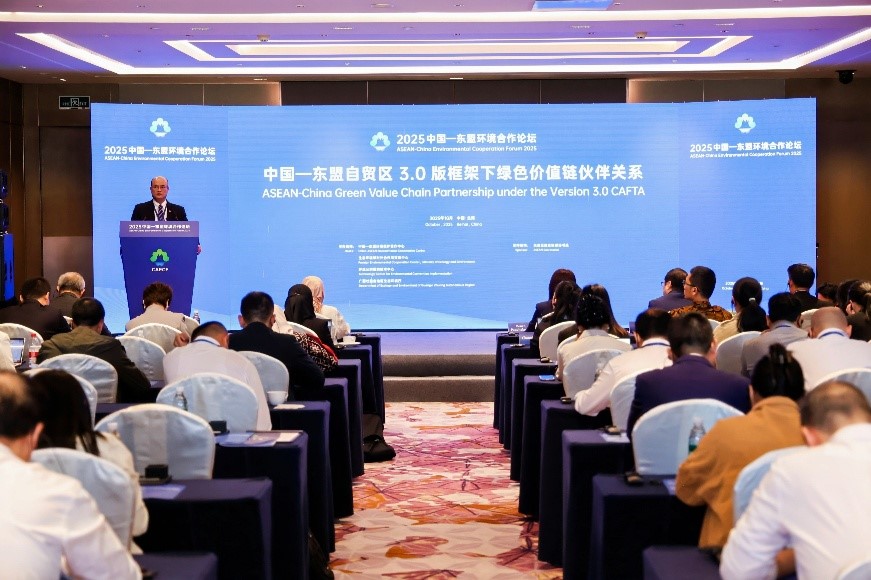 2025年10月22日,中国-东盟环境合作论坛平行论坛:中国—东盟自贸区3.0版框架下绿色价值链伙伴关系在广西北海顺利举办。本次活动由中国—东盟环境保护合作中心/生态环境部对外合作与交流中心和广西壮族自治区生态环境厅共同主办,东南亚国家联盟秘书处支持。来自中国生态环境部及地方环境部门、东盟国家气候与环境部门、以及联合国机构、国际组织、研究机构、企业等代表参加论坛。