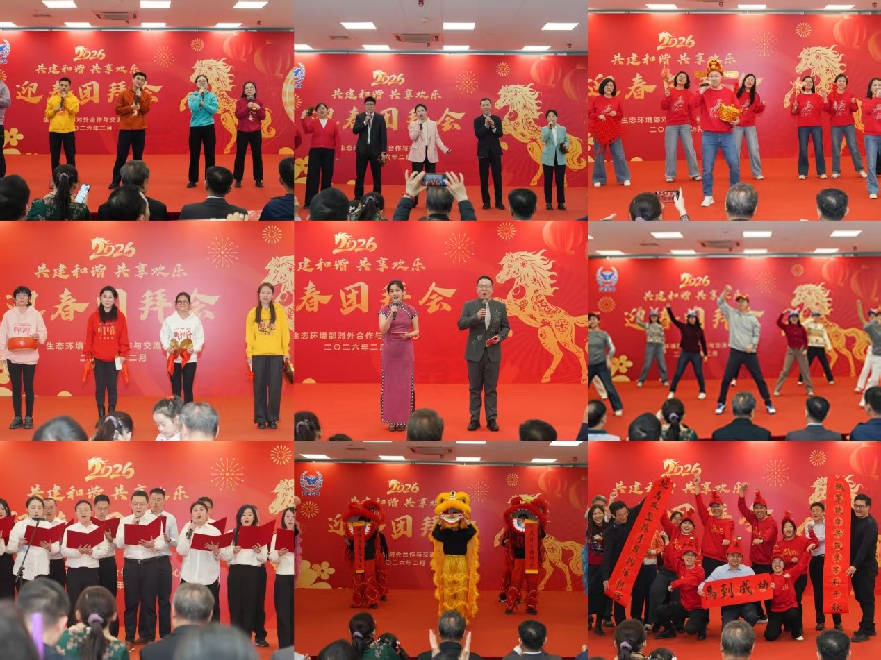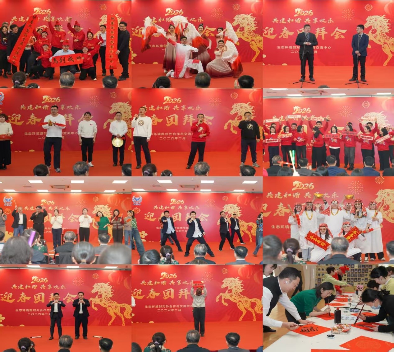 随后,中心举行了2026年新春团拜会,全体干部职工欢聚一堂,共贺马年新春、共话环保初心。团拜会由中心工会牵头主办,各工会小组协同筹备,旨在展现干部职工昂扬风貌,凝聚奋进力量、增强团队凝聚力,进一步激励大家深耕生态环境国际合作事业。活动中,各部门精心编排了舞蹈、合唱、曲艺、语言类等形式多样的文艺节目,现场气氛热烈欢快,掌声笑声此起彼伏,整场演出精彩纷呈。中心书法班同步开展了“福进万家”书法活动,为全体员工送上新春美好祝福。此次团拜会既充分展现了中心团结进取、充满活力的文化氛围,更凝聚起同心奋进的强大合力,营造出喜庆祥和、其乐融融的节日氛围。