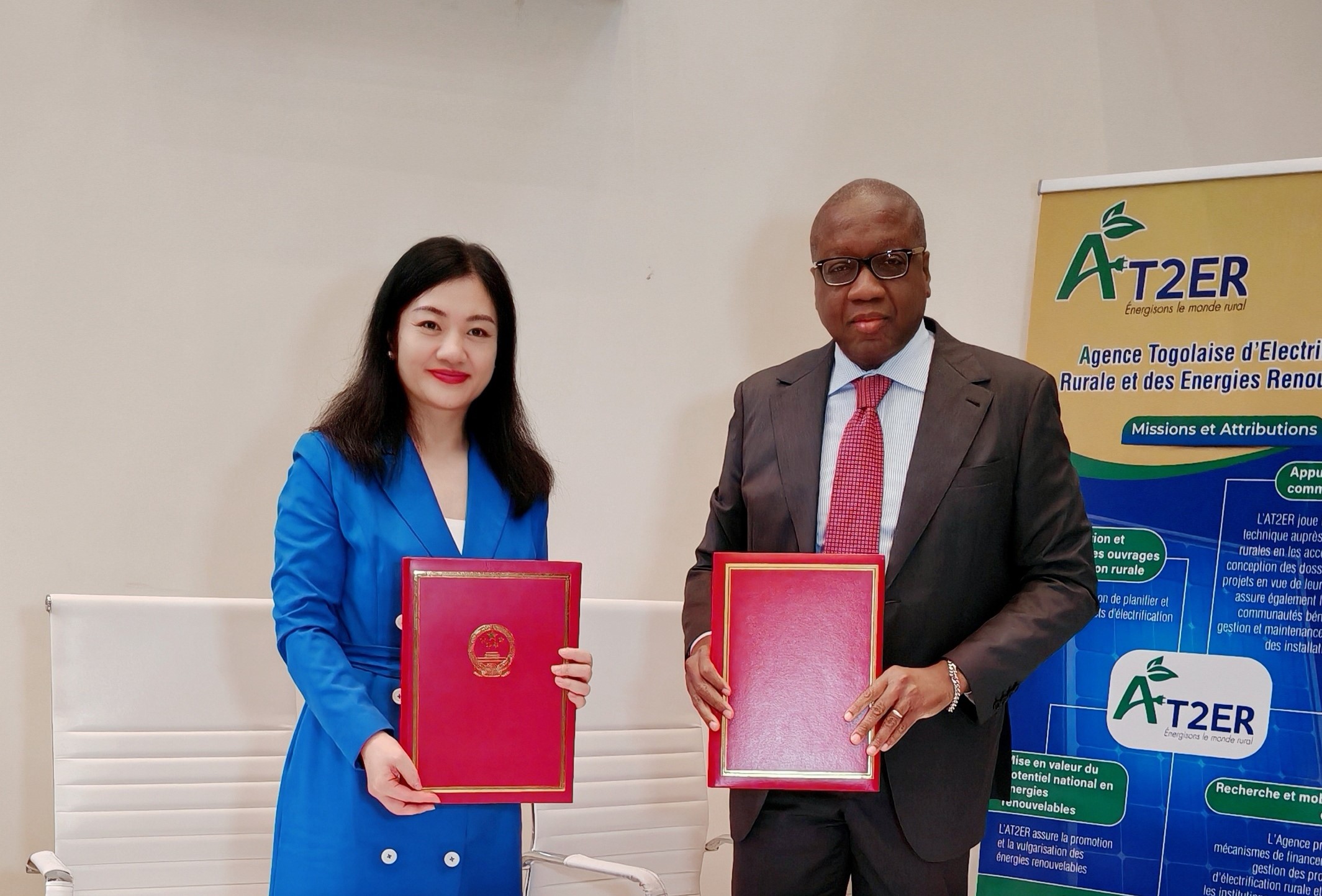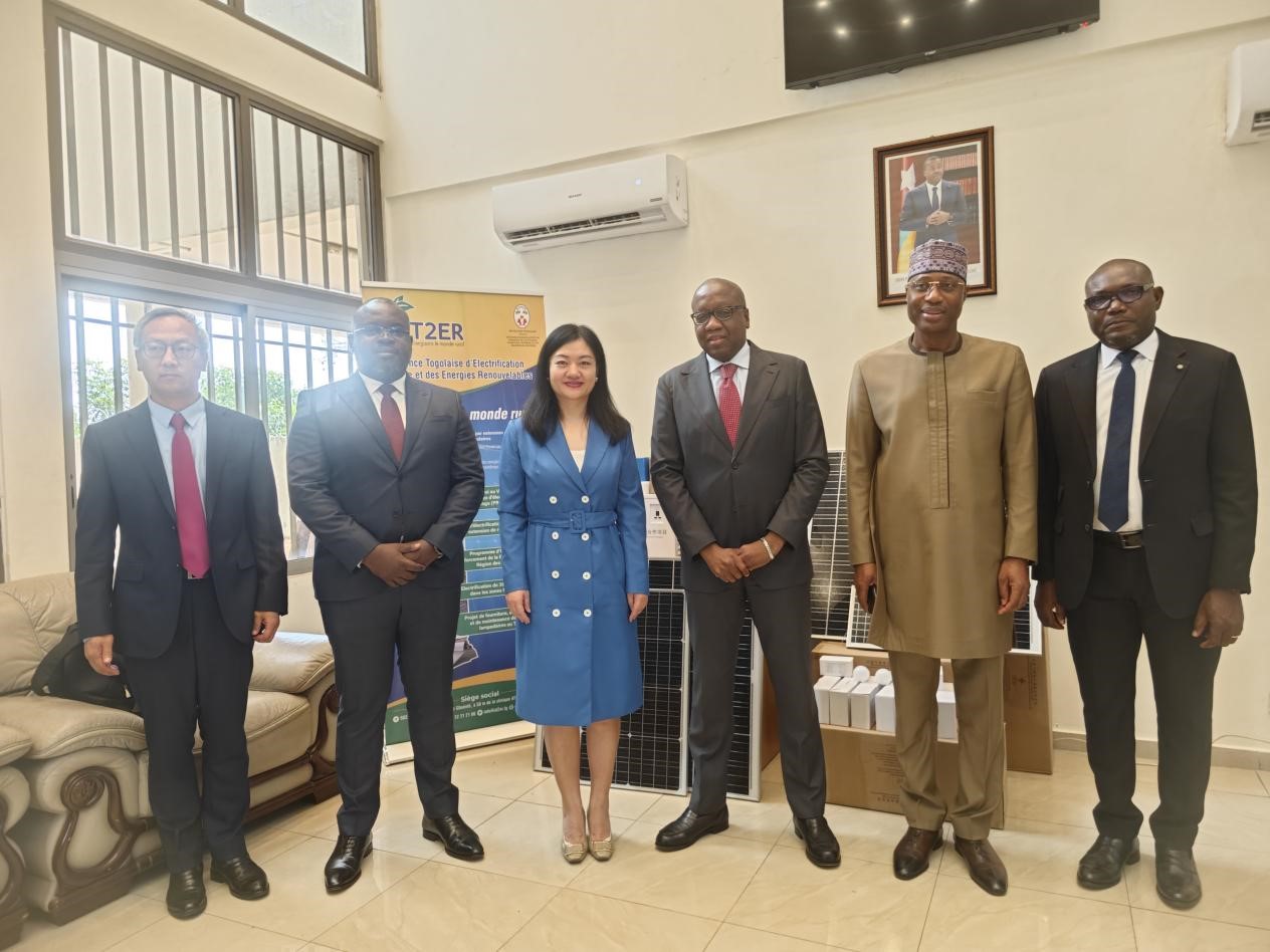 2025年11月6日,应对气候变化南南合作“非洲光带”多哥项目在首都洛美举办物资交接仪式,中国驻多哥大使王敏代表生态环境部与多哥能源与矿产资源部长级代表艾克罗共同出席交接仪式并签署接收证书。