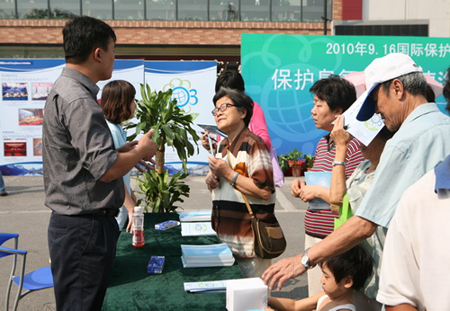 2010年9月14日上午,环境保护部环境保护对外合作中心、联合国环境规划署和中国家用电器协会在北京新街口商业区联合举办了“9.16国际保护臭氧日公众宣传活动”,向现场观众介绍了我国臭氧层保护的相关情况,并讲解了房间空调器选择、安装、使用和维修的知识。我中心温武瑞主任、联合国环境规划署臭氧行动处拉让德拉·山地先生,中国家用电器协会王雷副理事长参加了此次活动,并与现场观众进行了交流。中国环境报、中国日报、北京电视台、京华时报等9家媒体对活动进行了现场采访。